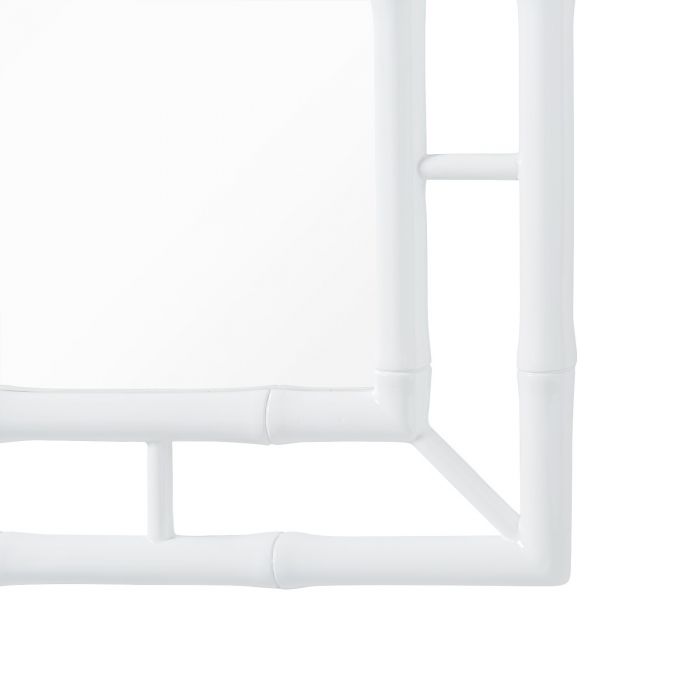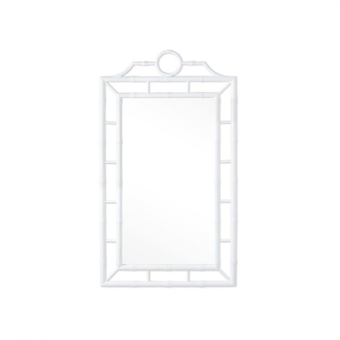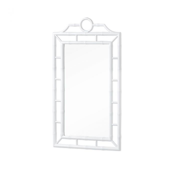 Throughout the Chloe Collection, our craftsmen have taken the ornate elements of Chinoiserie design, made famous by the likes of Thomas Chippendale in the 18th century, and pared them down to showcase their elegant essence through refined simplicity. Solid mahogany has been expertly carved to resemble bamboo, which here makes up the fretwork frame of the Chloe Mirror, forming a decorative, Asian-inspired design. The faux bamboo border, lacquered and finished in clean white, provides a lightness fit for a sunny beach home (or a bedroom, living room or study you wish would feel like one).