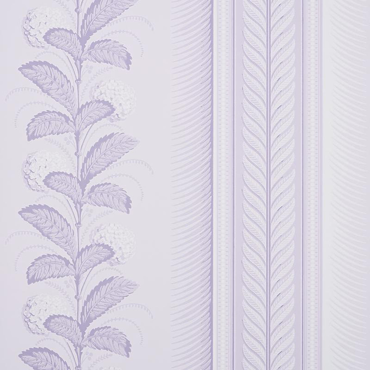 With lush, cottony hydrangea blossoms and an ornate border, this sophisticated, large-scale floral stripe in lilac has charmed generations of fans ever since it made its film debut in Gone the Wind in 1939.