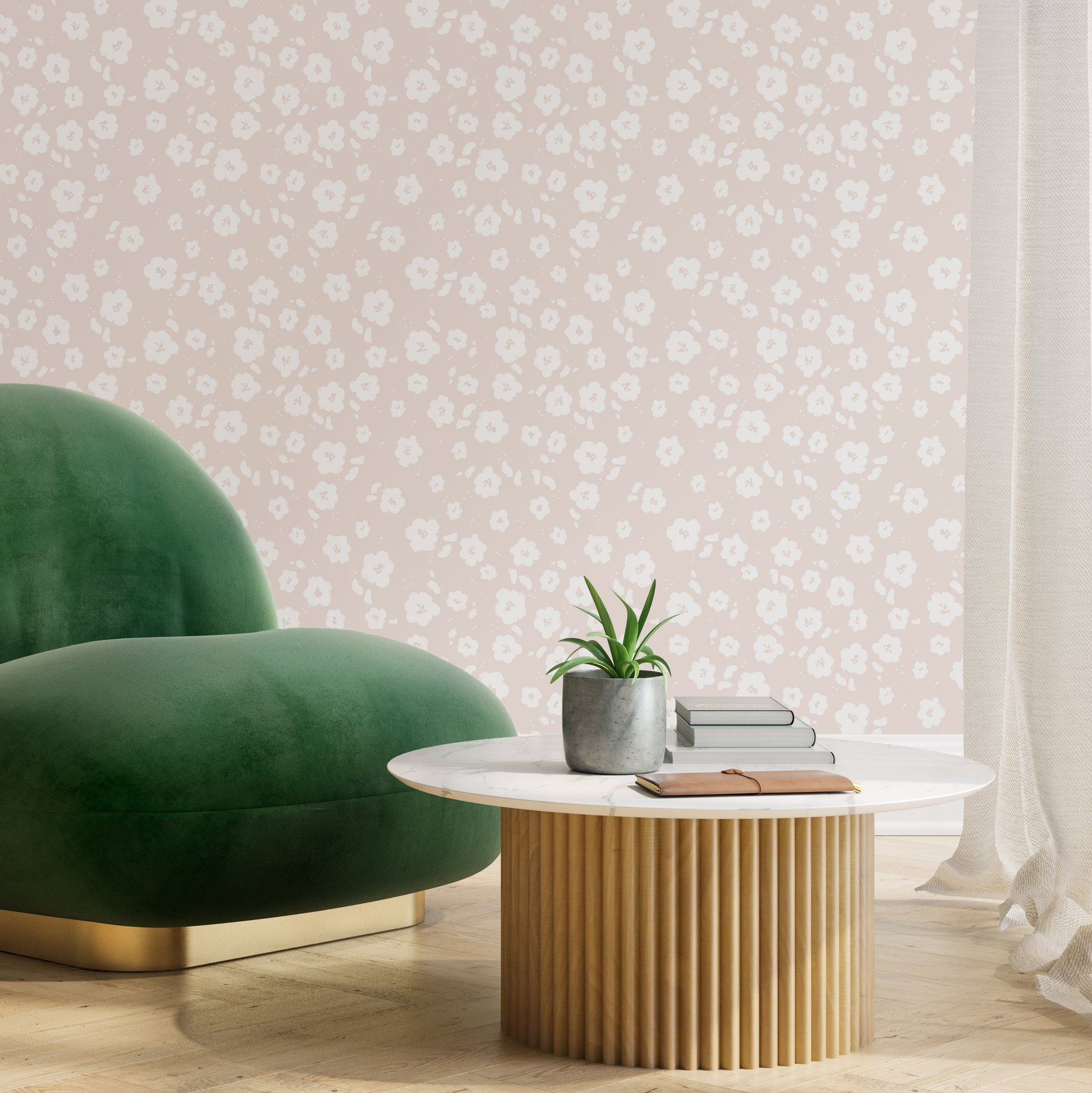 In this painterly pattern, Poppy’s saturated background gives way for the abstract florals to dance throughout a field of color.