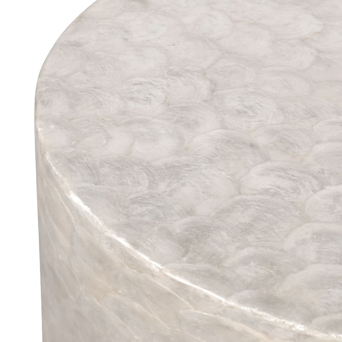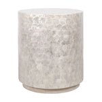 The Solana Side Table showcases elegant craftsmanship with its hand-applied natural capiz shell surface and soft white sheen. Its round silhouette rests on a solid acacia wood plinth base for stability and grounded style. Perfect on its own or paired with the matching coffee table, it complements coastal, boho, and transitional interiors. Due to the natural shell and artisan construction, each piece offers unique variations in texture and tone