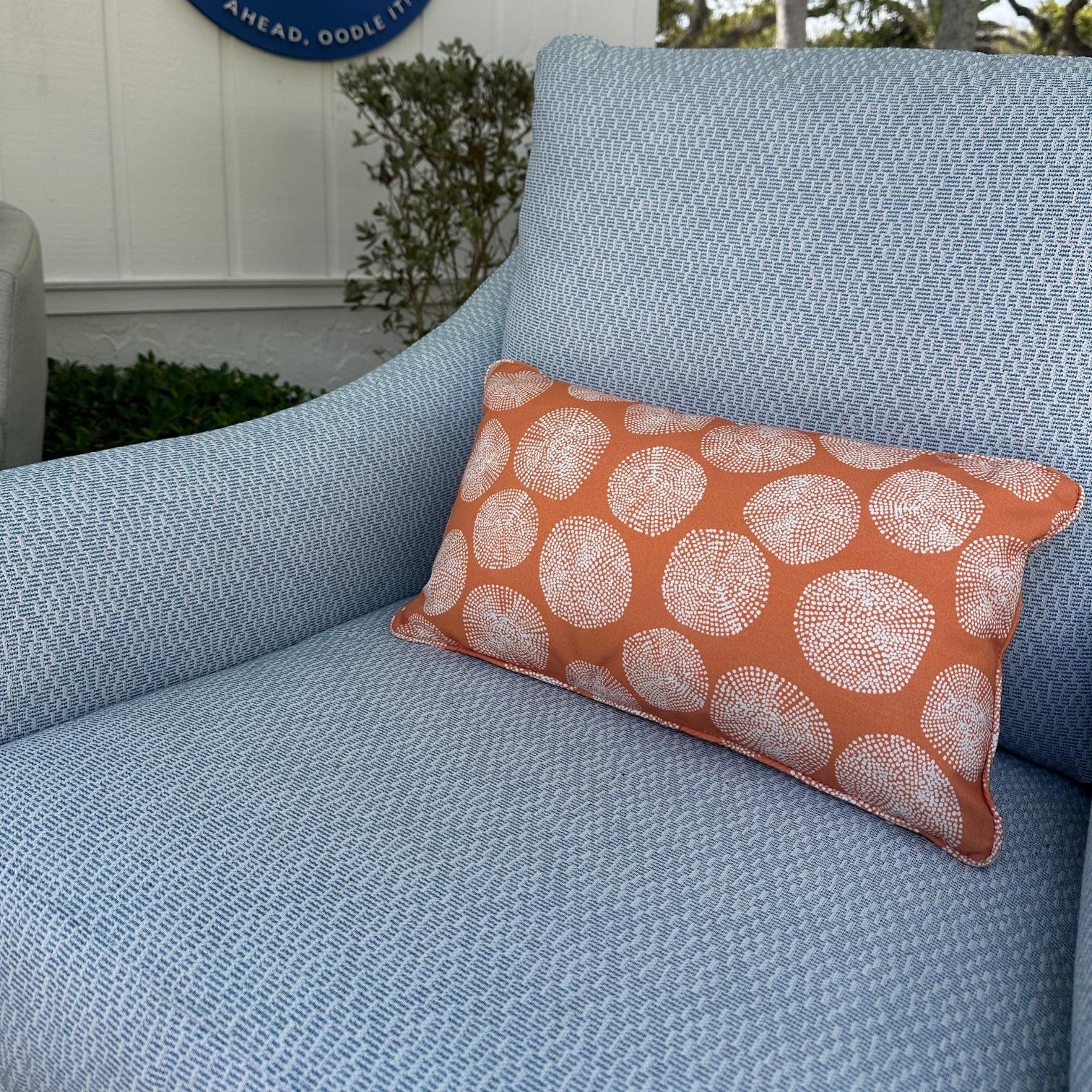 An Oodles Exclusive- The Peter Fasano Sconset Outdoor Pillow pairs iconic pattern with performance fabric designed for outdoor living. Made from 100% solution-dyed acrylic with a water-resistant finish, each pillow includes a drainable outdoor insert for lasting comfort and durability.