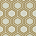 Selo. A geometric wallpaper featuring interlocking hexagons, with a multitude of metallic tones across a range of stunning colorways.