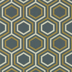 Selo. A geometric wallpaper featuring interlocking hexagons, with a multitude of metallic tones across a range of stunning colorways.